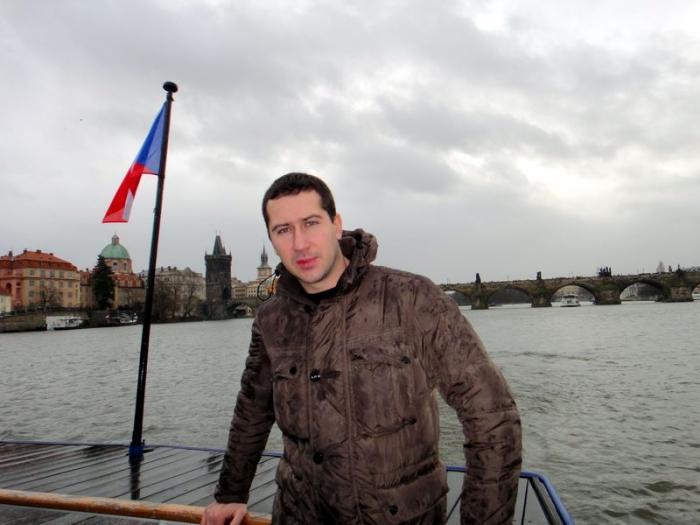 Наш отель расположен очень удачно, все в пешей доступности. Через Карлов мост дошли до Старого места, осмотрели собор Св. Вита, Королевский дворец, полюбовались панорамой Праги, зашли в кафе выпить по глинтвейну, т.к. для пива как-то не климатило, и пошли искать пристань. Долго искать не пришлось, купили в кассе билеты на часовую прогулку за 220 крон. Речные трамвайчики отправляются каждый час, до нашего оставалось минут 15, и мы успели прогуляться вдоль реки. Опять пошел дождь. Из-за плохой погоды все спустились на нижнюю палубу, где разместились за отдельными столиками, как в ресторане, заказали еще по глинтвейну. В середине прогулки решили подняться на верхнюю палубу пофоткаться, дождик и ветер, кроме нас там никого не было.