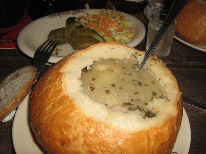 отобедать журек в хлебе.За 26злотых нас доставили к Chlopskie jadlo недалеко от барбакана. Журек да под