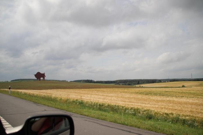 В том, что огурец кормит почти весь город, сомневаться не приходится – везде, на городском рынке, вдоль дороги стоят сотни импровизированных торговых точек с зелеными горками только что снятых с грядки знаменитых луховицких огурчиков. Говорят, что даже суздальские огурцы уступают по вкусовым качествам своим собратьям из Луховиц! Так что, если хотите отведать огурчиков — приезжайте в Луховицы!!! Мы правда, кроме огурчиков (их просто купили в дорогу) поужинали в МакДональдсе, который очень удачно находится на перекрестке, прямо напротив памятника. Ну и продолжили наш путь… Спидометр отсчитывал километр за километром, уже стемнело. Хотелось уже остановиться куда-нибудь на ночлег и нормально отдохнуть. Но тут я просчиталась — мне почему-то показалось, что бронировать отели и гостиницы надо только за рубежом, а тут у нас и так все есть. В итоге мы еле-еле нашли какой-то придорожный отель, в котором нельзя было даже попить чаю, но была охраняемая стоянка и номер с кроватями (туалет и умывальник на этаже). Стоили все это удовольствие примерно 1400 рублей.Называлась гостиница «Экотек-Смоленск». Расположена она на 297 км а/м Москва-Беларусь, в 155 км от границы с Белоруссией.Таким образом, за первый день нашего путешествия было проделано 1350 км. Выспавшись и выглянув в окно, мы увидели печальный вид: шел дождь…