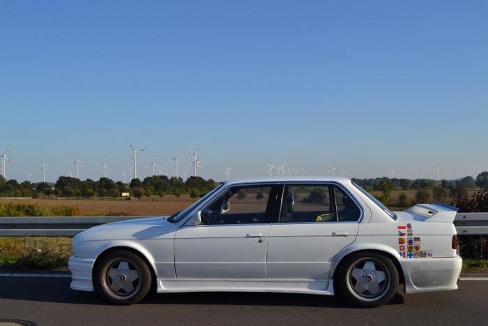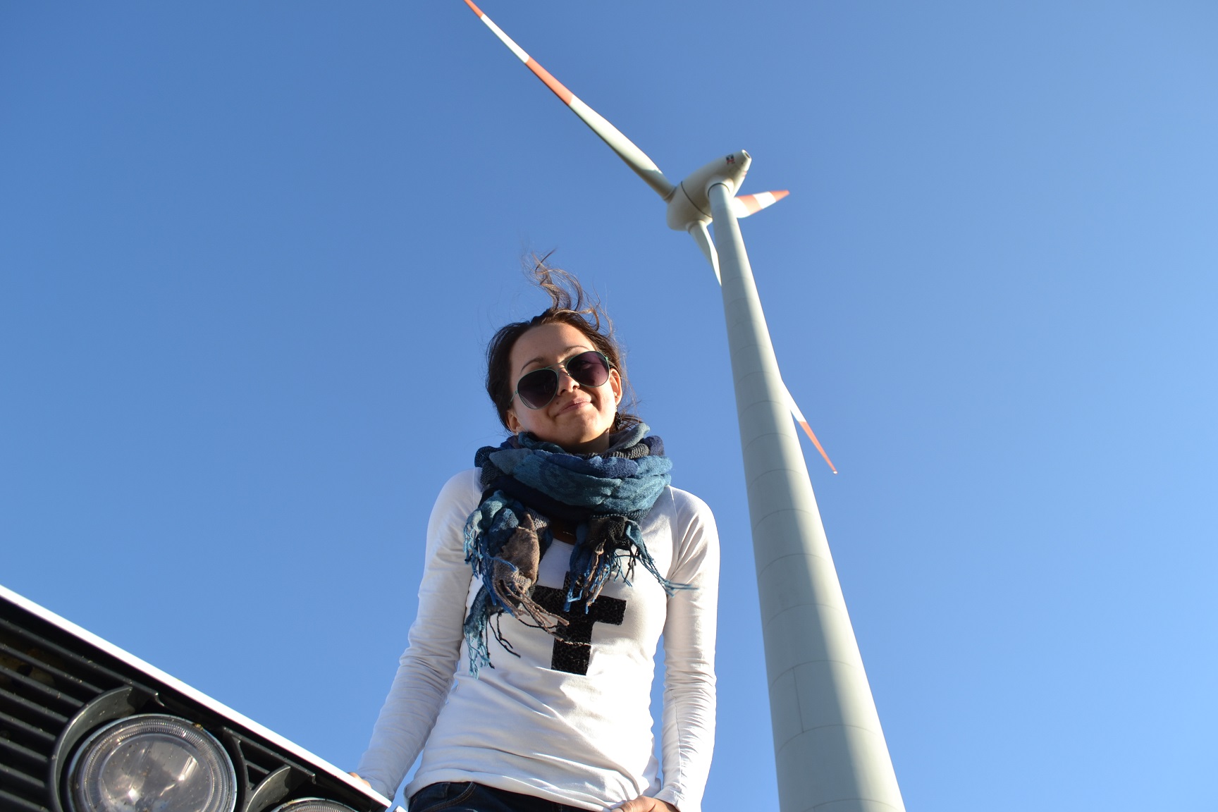 Вообщем, я уже не выдержал и мы свернули с автобана когда более-менее приблизились к этим ветрякам. Оказалось не так далеко было до них ехать, может минут 10 максимум. Быстро нашли дорожку к ним — там уже асфальт закончился. И мы подъехали к нему вупор… Скажу так, с далека он кажется не таким огромным как в близи)) И когда стоишь прям под ним, аж волосы дыбом поднимаются при каждом прохождении лопасти у тебя над головой :) Довольно стремновато оказалось:) Ну естественно пофоткались, посмотрели на всё это дело и поехали дальше.