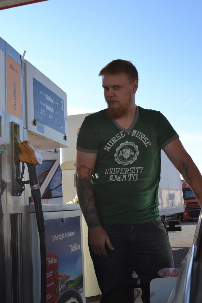 Ну что ж снова полный бак, снова наша карточка обеднела где-то на 45 Евро. И мы тронулись дальше. Мы уже выезжали с заправки, и тут Настя говорит — «Прикольно, там стояли автостопщики с надписью Берлин», молодая пара. Ну я как бы говорю — ну давай подберм, поедем вместе — весело будет. Пообщаемся. Но Настя почему-то настояла на том чтобы ехать дальше… С другой стороны дело конечно такое… Но мы же в Европе, и я как-бы не особо представлял что может быть какая-то опастность. Хотя всё может быть…