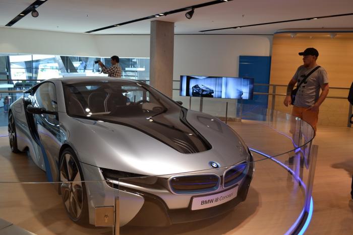 Пошли погуляли в выставочный центр БМВ, зашли в фан-шоп, поофигевали с цен… Максимум на что мы решились это купить магнитик БМВ музея :) Всё очень круто и дорого, но… Красиво! Поглазели на новые машинки, на новый BMW i8 гибридный.