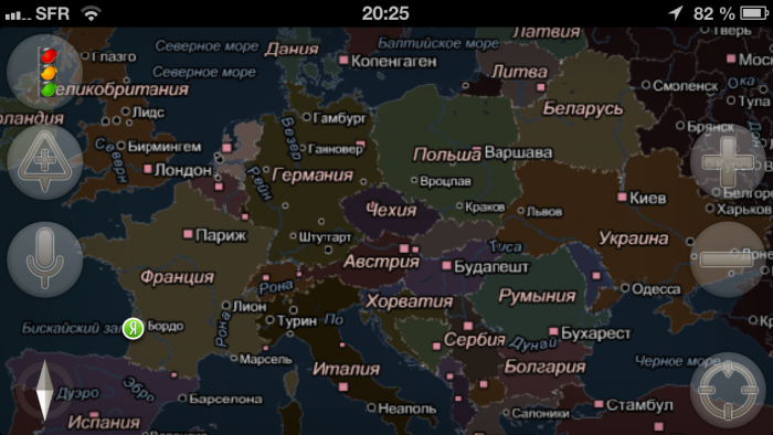 Как ни странно, на окружной Бордо встали в пробку… Прочём достаточно внезапно. Все ехали в потоке 100-110км/ч, и тут я только хлоп, и вижу как передо мной машины вытормаживаются и...(внимание!), включают аварийку! Я чё-то непонял сначало такого манёвра, но сам на всякий случай тоже включил, и тут я смотрю, сзади идущая фура тоже включает аварийку. Вообщем, как я выяснил позже (вернее я пришёл к такому выводу), у французов (а можнет и во всей Европе), принято, если ты резко вытормаживаешься, то включать аварийку, чтобы предупредить сзади идущего что ты реально тормозишь резко. На самом деле весьма удобно, потому что на скорости ты можешь не понять, на сколько быстро машина перед тобой тормозит. Вот это культура, во это я понимаю. А у нас аварийка стала как «кнопка — отмазка от ПДД», и зачастую аварийкой злоупотребляют, говоря «спасибо» когда наглым образом влезают перед тобой. Ну такое. К слову, в Европе я редко видел чтоб кто-то без лишей надобности включал аварийку.