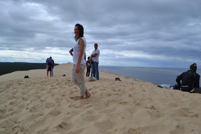 Спустились к океану, потрогали водичку, вроде не холодная… Но погода была такая, что не распологала к купанию… Спускались быстро, а поднимались..)) Ох, очень долго… Но потом нас взад подогнал немного сзадиидущий ливень, мы уже на вершину практически забегали, чтобы потом опять помчаться вниз к деревьям и спрятаться от ливня. В целом прикольно конечно вышло) Мы таки промокли) Далее наш путь лежал уже непосредственно в сам Аркашон.