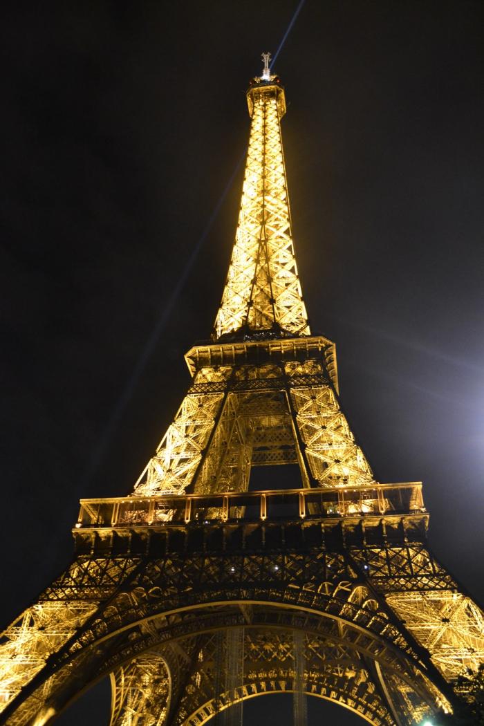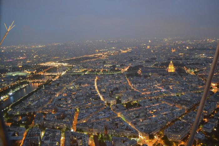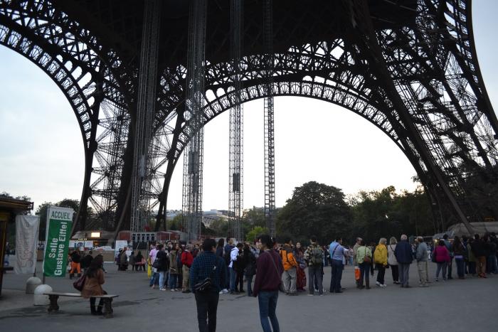 Подъём на самый верх башни стоил по-моему 16 Евро, а на половину башни около 9 Евро. Понятно что нам надо было на самый верх) Выждали эту очередь, прошли такой серьёзный досмотр, и поднялись. Подъём туда осуществляется в 2 этапа, сначала ты поднимаешься на лифте под углом в ноге башни, а потом переходишь на другой лифт который уже вертикально поднимается. Кстати, везде много напоминаний и табличек «Осторожно карманники». Видимо, тут не всё так красиво и сказочно как описывают многие)