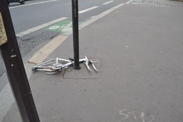 По пути наблюдали такие вот велики:) К слову, велик и мопед — это наверно самое распространённое передвижение в Париже, они везде, порой мне даже казалось что их больше чем самих людей) Поэтому я так думаю, что оставив так велик, хозяин вообще не парится что с ним произойдёт. Потому что он пойдёт и купит себе новый. Кстати таких великов по Парижу мы встречали достаточно часто, то есть это для них можно сказать что норма:)