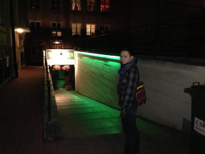 Вечерело, и как бы уже хотелось поесть чего-то. Мы вроде как уже предусмотрительно оделись на всякий случай) Всё-таки уже середина осени, вечером холодно и всё такое. Решили зайти в какой-то паб поесть — попить пива.