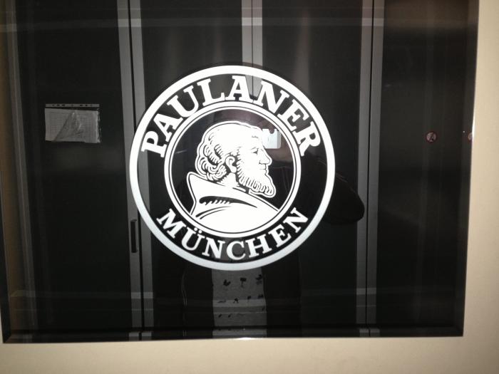 А вот в туалете внезапно зеркало с логотипом пива, которого мы купили домой :)