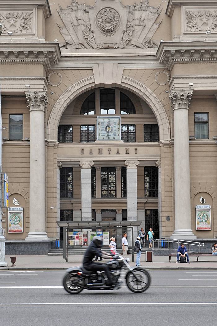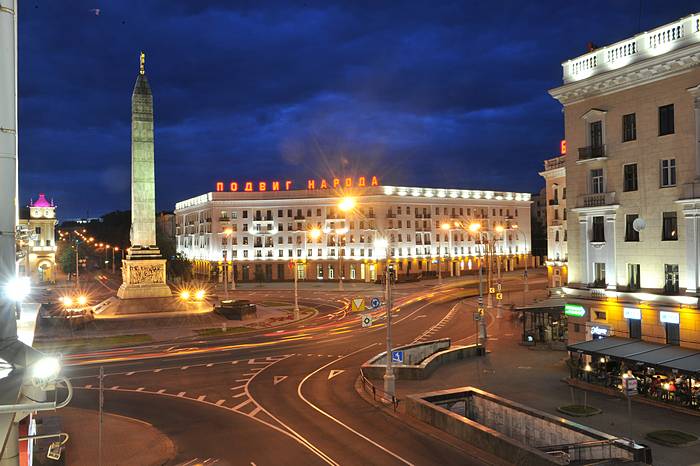 Сегодня нас ждал Минск. До него 350 км. Постарались выехать пораньше, но город покинули только в 9 утра. Дорога была хорошей, и мы в 13:30 уже заселились в Минске. Квартира оказалась в сталинском доме выходящим на одну из центральных площадей Минска, на площадь Победы.