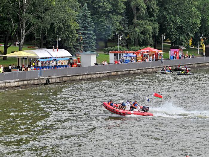 Переходя мост через р. Свислочь мы оказались в центре показательных выступлений белорусских МЧСников.