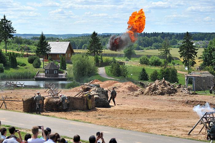 Кстати у нас под Питером тоже бывают реконструкции, но они проходят по-другому. Взрывы производить запретили, поэтому они звучат из колонок. Но за то летают самолеты. ЯК-18 с немецкой свастикой. Парковки стихийные, вдоль дорог.