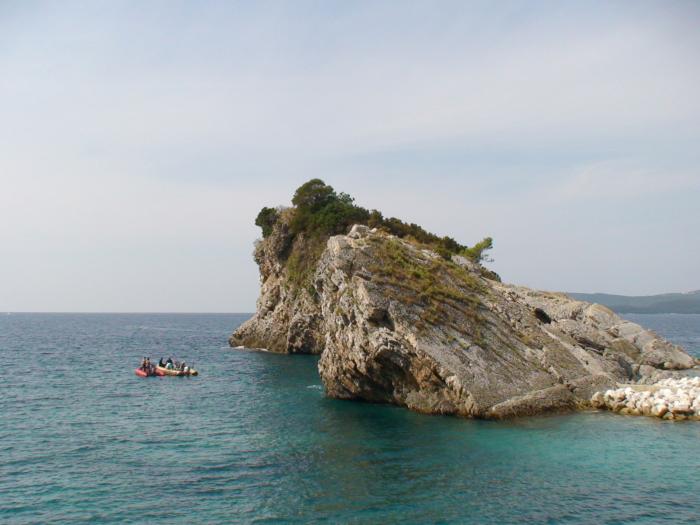 Отдых в Будве, поездка на остров, который кажется называется Святой Никола. Дошли пешком по набережной до пристани от которой идут катера, тут же подошел катер и мы в него прыгнули, купили билеты (5 евро с человека туда и обратно), и только потом стали выяснять куда мы едем. Оказались мы едем в нужном направлении. Катер сначала едет к Святому Стефану и его можно увидеть со стороны моря, а потом везет всех на остров Николы, там все выходят и обратно можно вернуться через час или два, или три на том же катере. На острове есть пляж, ресторан. Можно поплавать с маской, очень интересное дно, много рыбок, встречаются морские ежи, но в Черногории они не в таком количестве, как в Хорватии.
