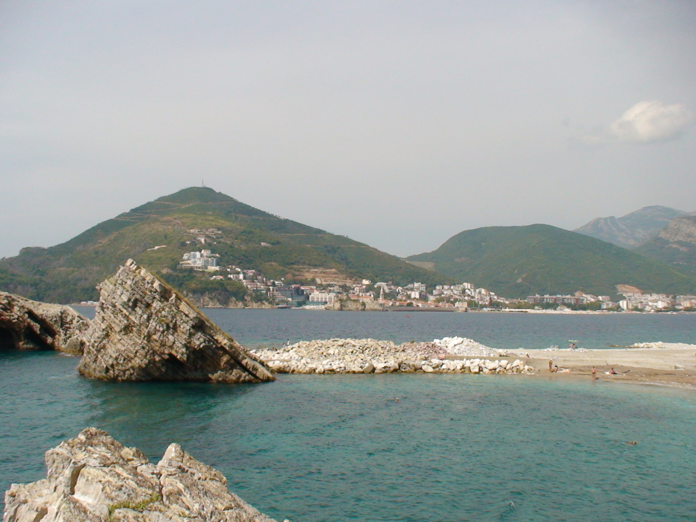 Первый день посвятили ознакомлению с окрестностями, а вечером отправились в ресторан. Пошли пешком до Будвы, от нас это около 3 км. Дорога по берегу моря. Названия ресторана не помню, но они там все недорогие и готовят прилично. Вино заказывали исключительно белое Крстач, его же покупали и в магазинах, пить рекомендуют охлажденным. Есть еще красное Вранак, но нам оно не понравилось.