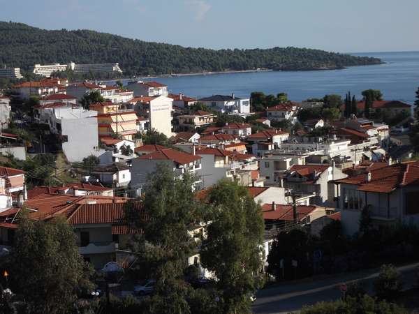 Преодолев 350 км, мы оказались у цели. Поселок Пефкохори для Кассандры примерно то же самое, что Будва для Монтенегро, т.е. то, что мы и хотели. Для начала проехали всю деревню насквозь, чтобы оценить ее размер, затем развернулись, парканулись и пошли искать жилье.