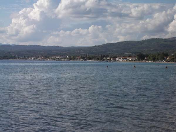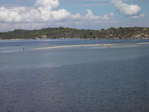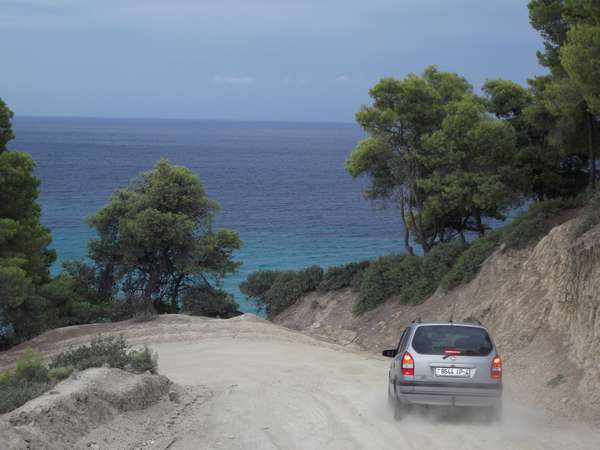Вообще-то на Ситонии жизнь есть только на побережье, попытки пробраться вглубь полуострова обречены, т.к. он представляет собой сплошную скалу, т.е. едешь по побережью, слева море, справа скала, дорог направо нет, не считая пары козьих троп. Фотографировали священную гору Афон, к сожалению, он часто прикрыт облаками. Кстати, Афон было видно и с Кассандры.