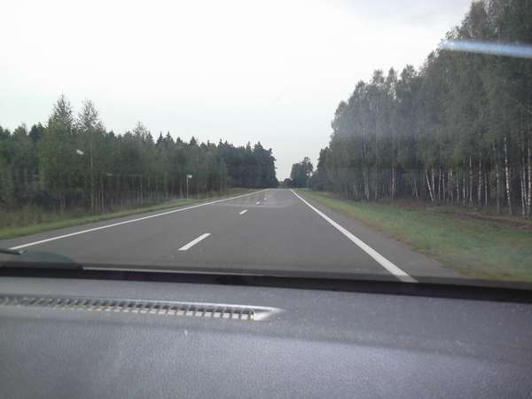В итоге выехали из Гродно в 5,45, настроение приподнятое, а что ж, в Грецию едем! Мажор продолжался километров 90, до г.Свислочь, затем нас накрыла суровая действительность. Дело в том, что мне хотелось проехать по новой дороге, ведущей вдоль Беловежской Пущи. Поскольку сдана она недавно, на картах ее не было, но я знал, что начинается она за Свислочью.