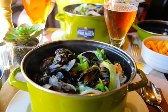 Напротив фонтана расположен ресторан La Dentelliere, посетители которого аппетитно уплетали мидии из небольших кастрюлек салатного цвета. Мы вдруг вспомнили, что обеда у нас не было и неплохо было бы подкрепиться, а почему бы не двустворчатыми?