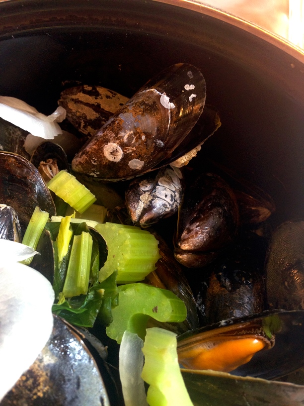 … сделали заказ и минут через двадцать получили две заветных, салатного цвета кастрюлек, с моллюсками: