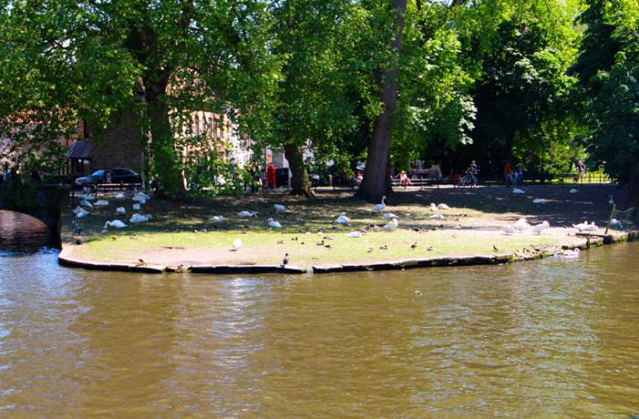И вот мы на берегу озера Minnewater, которое во многих путеводителях, в том и числе и русских, нередко называют «озером любви». Может от того, что на его берегах любят уединяться влюблённые парочки, а может название трансформировалось от нидерландского слова
