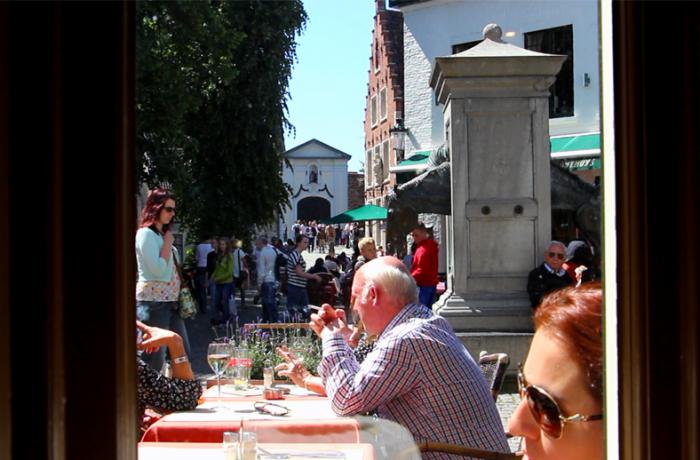 … и вышли на площадь Wijngaardplein, усеянную народом, который: кушал, пил, фотографировал, покупал, продавал, в общем жизнь била ключом. После небольшой звуковой передышки на лоне тихого монастырского парка мы вновь окунулись в атмосферу большого города.