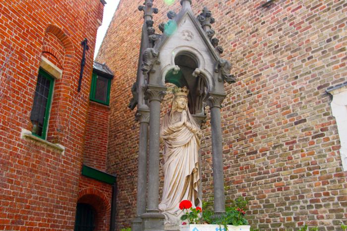 Мы помчались в сторону Бегинажа, не забывая на ходу «щёлкать» налево и направо. В глубине улицы Carmersstraat мелькнул большой купол церкви Английского монастыря, возвышающийся над ровной чередой брюггских домов: