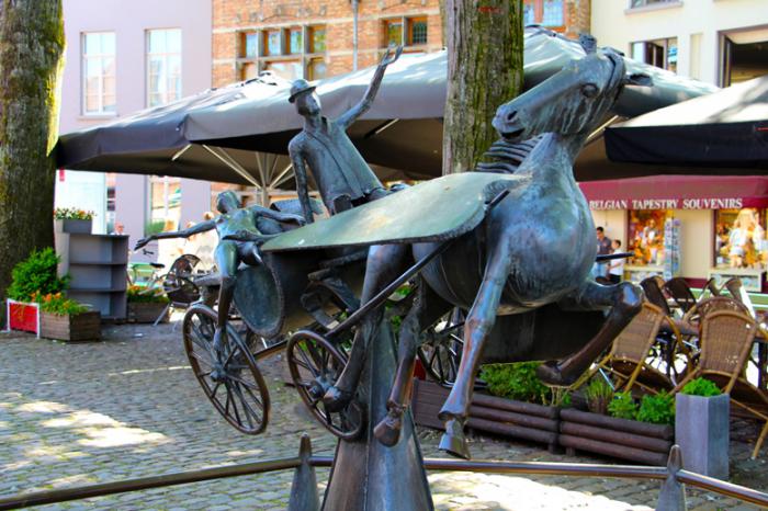 На площади Walplein наше внимание привлекла и повеселила скульптура «Зевс, Леда, Прометей и Пегас посещают Брюгге»: