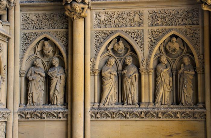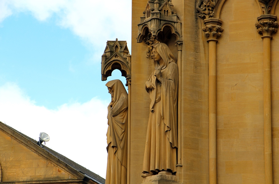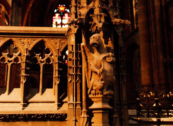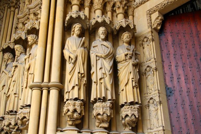 Снаружи собор в изобилии украшают всевозможные скульптуры и гаргульи:
