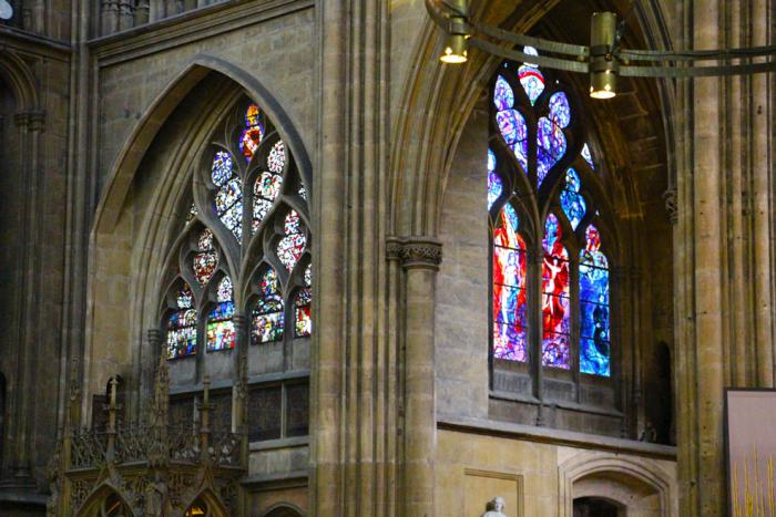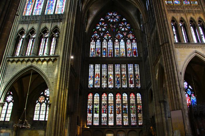 Витражи главного мецского храма заслуживают отдельного рассказа. Мне вообще нравится этот красивый раздел архитектурного искусства, и могу сказать, что Cathédrale Saint-Étienne de Metz обладает одной из красивейших витражных коллекций Европы, естественно из числа тех, которые я имел счастье лицезреть: