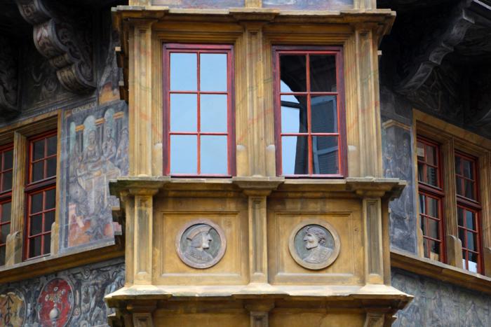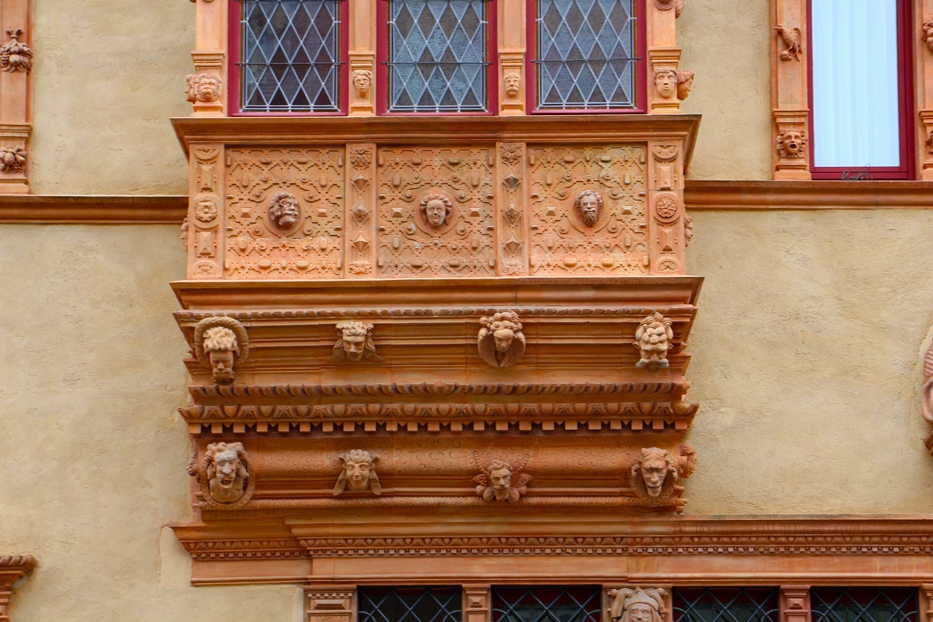 … создают интереснейший архитектурный ансамбль. Настенная роспись, вкупе с барельефами и фресками, украшающие стены maison Pfister…