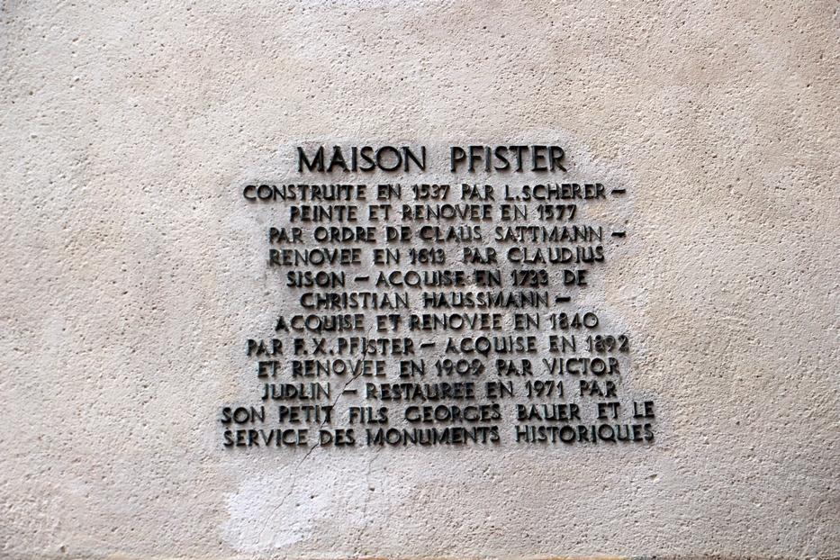Дом, построенный по заказу шляпника из Безансона Шерера, за свою историю неоднократно переходил от одного владельца к другому, пока в середине XIX века его не приобрела семья Пфистер, «фамилию» которых носит до сих пор. Сейчас здесь располагается специализированный магазин эльзасских вин.