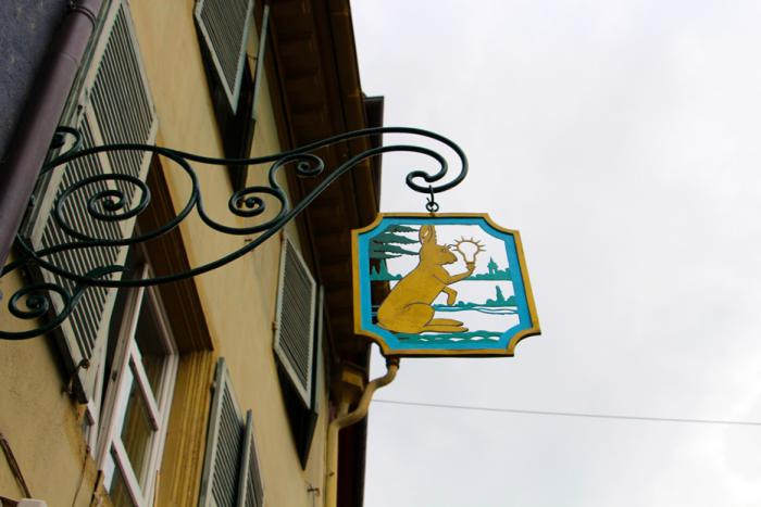 Вывеска колбасной лавки Boucherie-Charcuterie Zimmerlin, выполненная в 1930 году по рисунку Жана-Жака Вальтца — «Дядюшки Анси»: