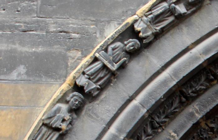 Среди множества персонажей можно увидеть фигуру первого архитектора храма — мастера Хумберта…