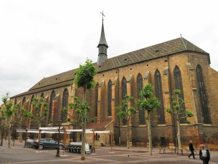 Храм доминиканцев моложе Святого Мартина на полвека, но построен был быстрее. Высокие стрельчатые оконные витражи церкви визуально увеличивают высоту стен и без того немаленького здания, а простота декора призвана подчеркнуть принадлежность храма к ордену, которому чужды роскошь и богатство. До Французской революции церковь принадлежала доминиканскому монастырю, после чего послужила и зернохранилищем, и казармами, и школой. Сейчас церковь — часть музея Унтерлинден, который размещается в помещениях монастыря на соседней улице: