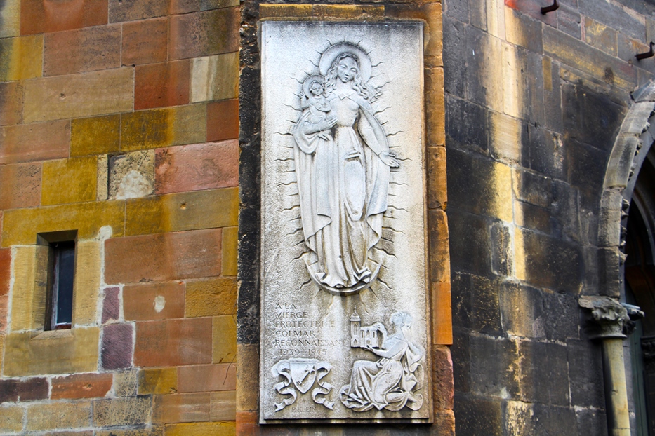Мемориальный барельеф в благодарность покровительнице Кольмара — Богоматери с младенцем, установленный в конце Второй мировой войны: