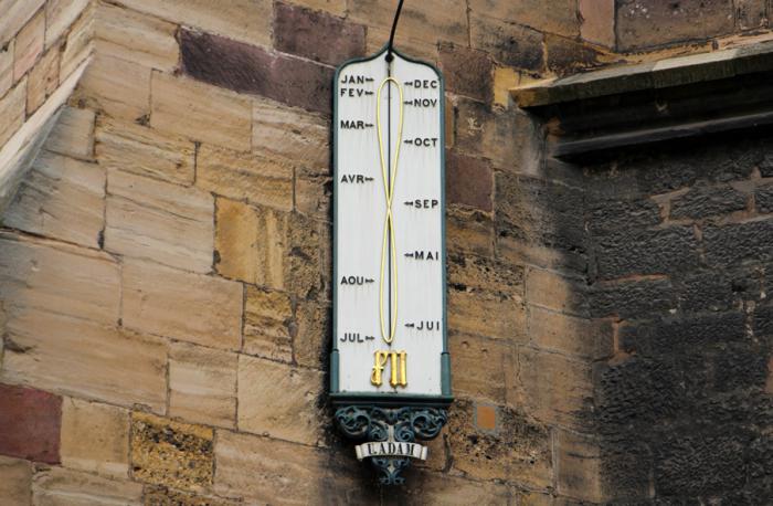 … изготовленные местным часовщиком Адамом в 1866 году. Чуть ниже – другие, работы того-же мастера — аналемматические солнечные, с очень замудрённым способом определения местного времени: