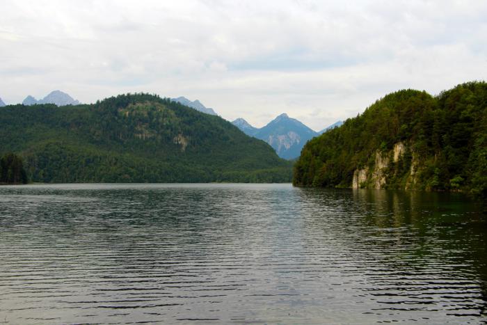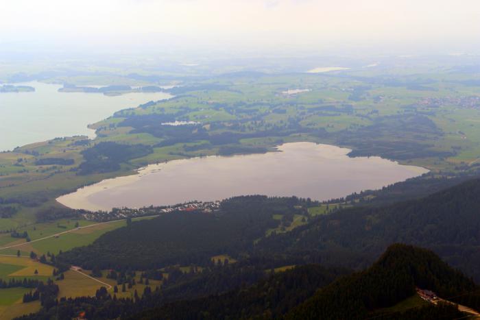 Справа и слева от него озёра: Альпийское (Alpsee)…