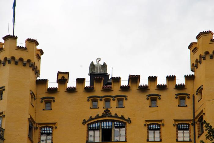Грациозная белая птица является символом этих мест, Швангау в переводе на русский – «Лебединый край». Лебедь украшал герб графского рода Швангау, на руинах крепости которых, носившей название Шванштайн (Лебединый камень), отец Людвига II король Баварии Максимилиан II Виттельсбах и построил Хоэншвангау с белоснежной птицей на крыше: