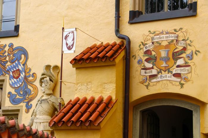 … вот только на его фасаде не птица, а рыцарь — Рыцарь Лебедя Лоэнгрин…