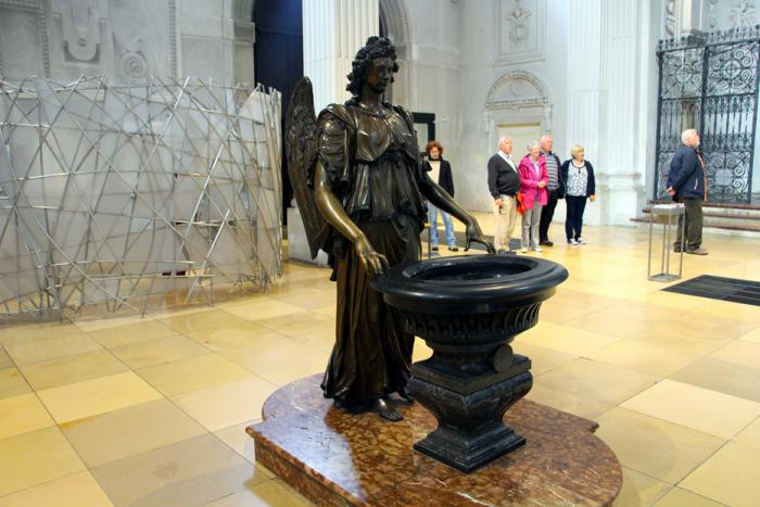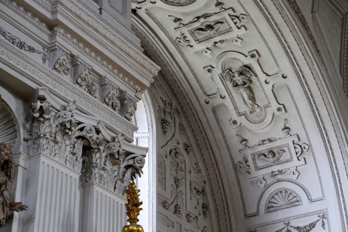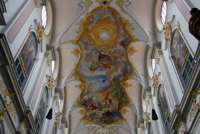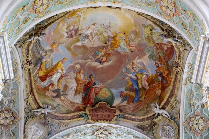 После чопорной, но однотонной Frauenkirche интерьер церкви Святого Петра завораживает взор богатством красок и помпезностью: