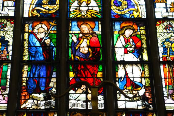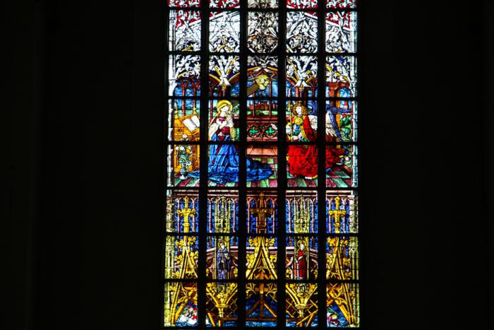 И лишь красочные витражи раскрашивают холодную гамму собора: