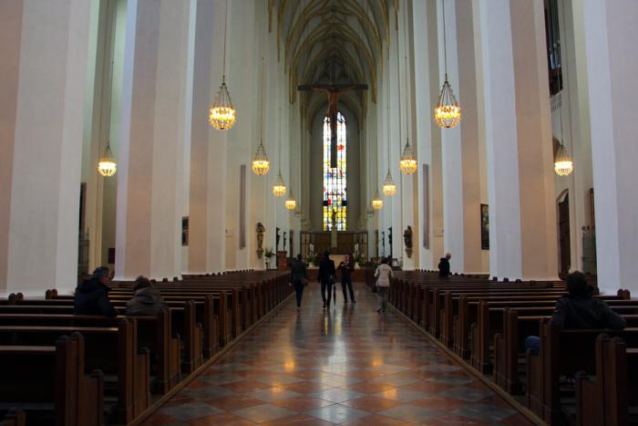 Здесь-же упокоены мощи священника-антинациста Руперта Майера, причисленного после смерти к лику блаженных. На верхнем этаже расположен роскошный церковный зал: