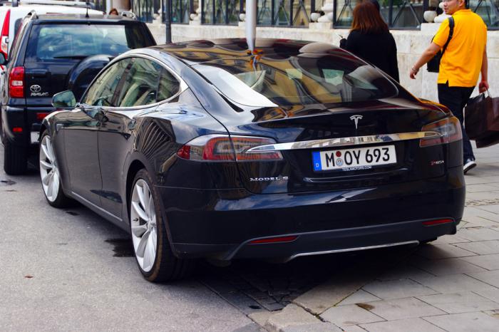 А ещё наше внимание привлекла своим дизайном «электричка» Tesla S:
