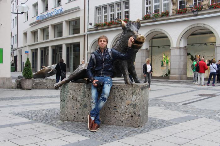 Выходишь из церкви под впечатлением увиденного и услышанного, с поселившейся благодатью в душе, проходишь сотню шагов, и благодатное умиротворение сменяется мирской улыбкой – впереди представители фауны – кабан и сом, правда в бронзе, но симпатичны. За их спинами – Немецкий музей охоты и рыболовства (бывшая церковь Святого Августина).