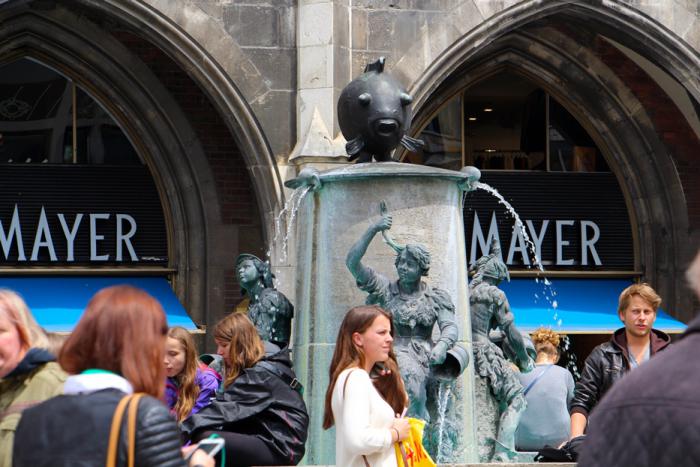 А неподалёку от колонны – фонтан Fischbrunnen, вокруг которого безмятежно отдыхают люди, не обременяя себя размышлениями: с кем, и за что сражаются пухленькие воинствующие херувимы: