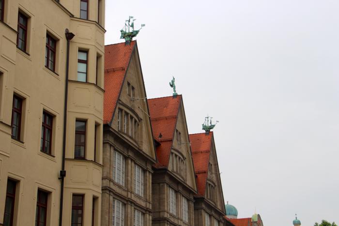 Парусные корабли в сухопутной Баварии — нонсенс, но как украшение крыш — вполне даже симпатично (торговый центр Oberpollinger):