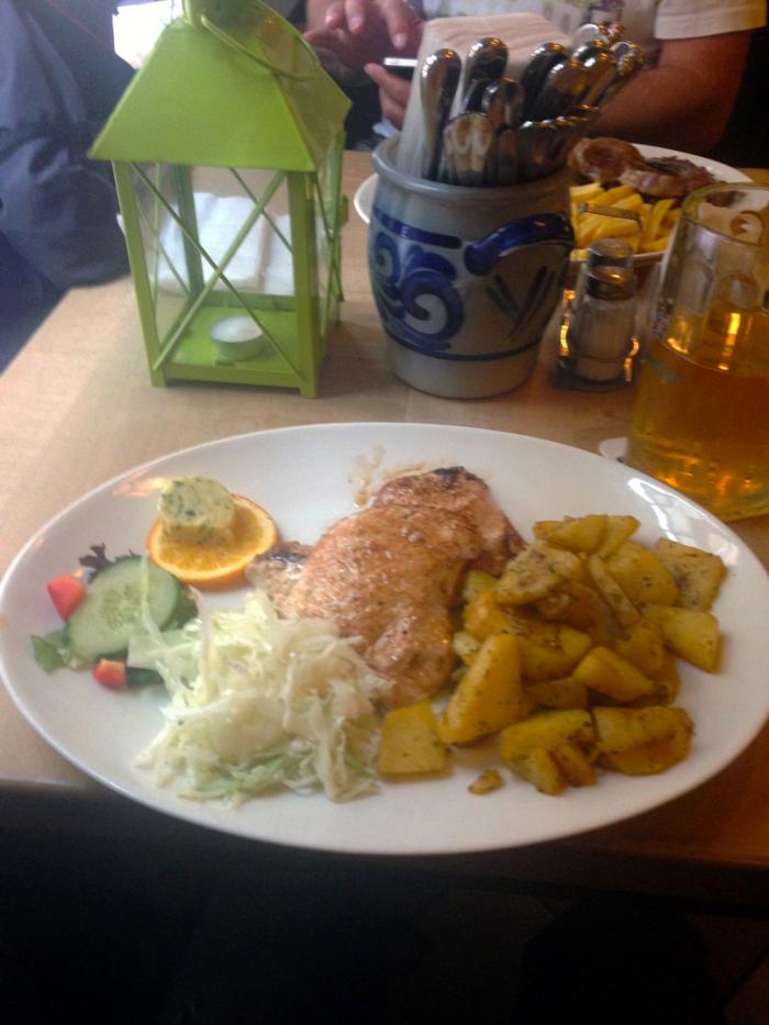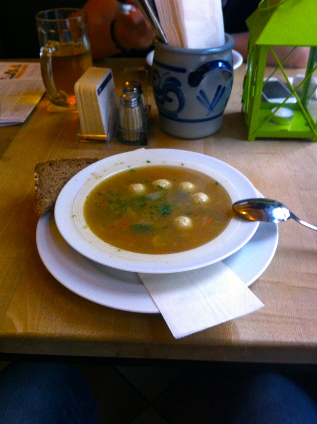 Однако сколько ни черпай духовную пищу, сытее не станешь. А тем временем перевалило далеко за полдень, пора было и подкрепиться. Как раз кстати на глаза попался Altes Brauhaus — колоритный ресторан немецкой кухни с отличным пивом и добротной кухней, правда без изысков. Тем не менее, свою главную задачу — доставить нам удовольствие и «задушить» червяка – заведение выполнило на все 100%. Удовольствие, состоящее из первого (для меня)…
