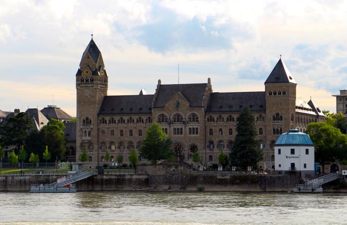 … и стоящее на противоположном берегу здание суда (Dikasterialgebaude) бывшего замка Филиппсбург (Schloss Philippsburg):