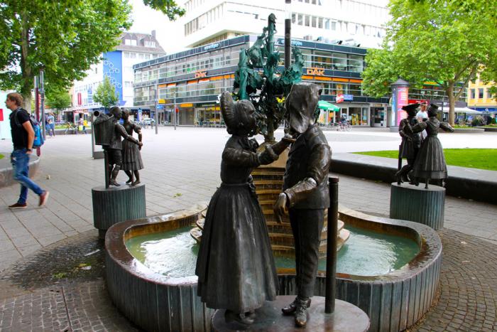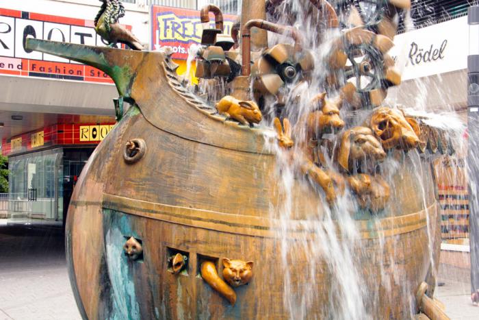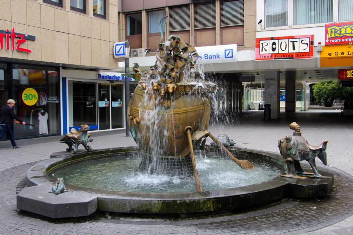 Чуть дальше, по улице Lohrstrasse, напротив торгового центра Fischelpassage, разбрызгивает воду чудесный «Ноев ковчег»…