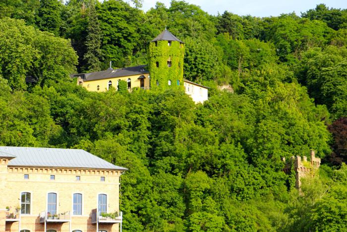 … среди которых выделяется, увитая зеленью, башня Luisenturm: