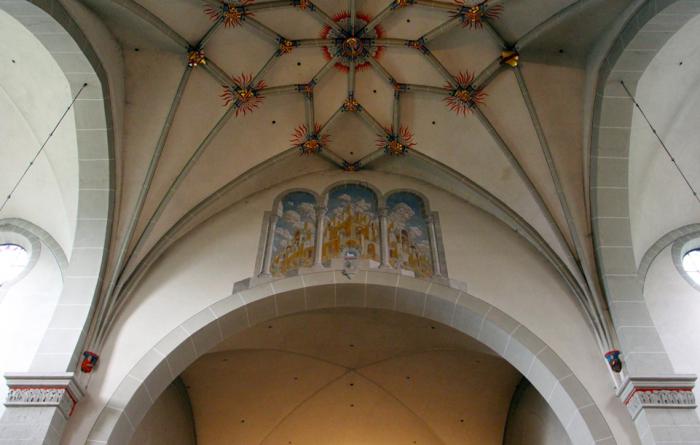 Нарядная базилика, построенная в XII веке и названная в честь католического святого Флорина Ремюсского, расположена на почти одноимённой площади Florinsmarkt. Знакомясь, из оправданного любопытства, с фактами из жития святого Флорина, выяснил, что он обладал очень редким, но оч-ч-чень полезным даром превращать воду в вино. Хотя, по российским меркам, не такая уж это редкая особенность — воду в вино превращать, у нас полстраны этим занимается. И все это знают, кроме правоохранительных органов. :)